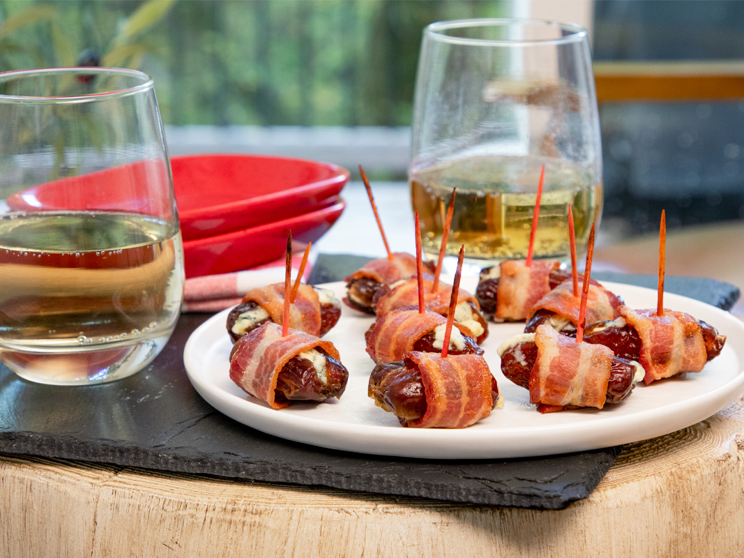 5. Wrap with Bacon: Wrap each stuffed date with a half slice of SunnyValley Smoked Thick Cut Applewood Bacon, securing with a toothpick.